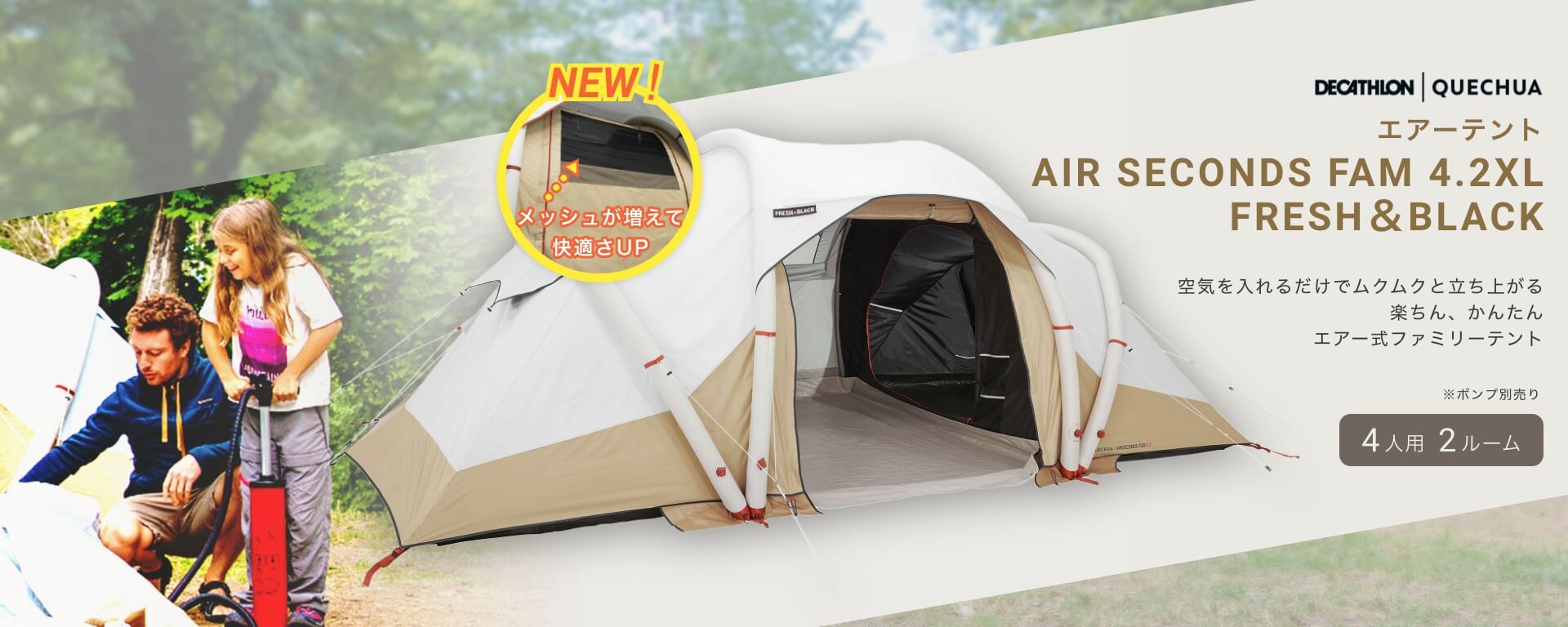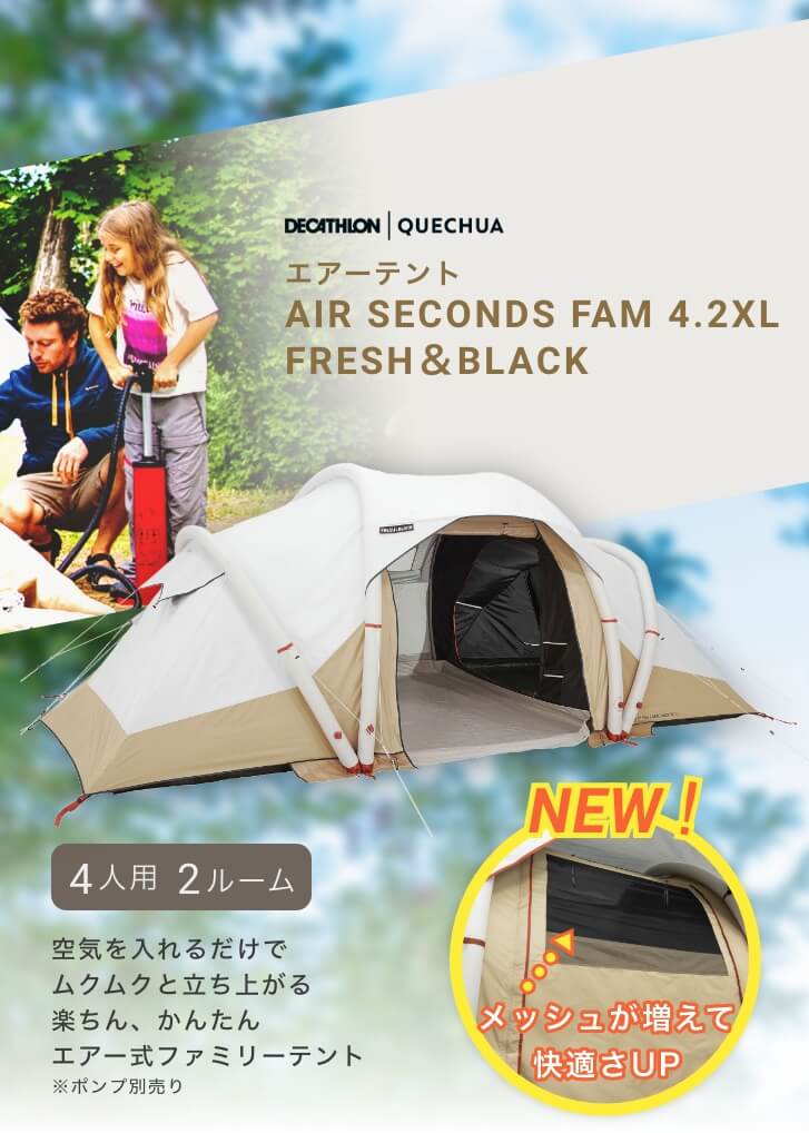 QUECHUA (ケシュア) キャンプ ファミリーテント エアーテント AIR SECONDS FAMILY 4.2 FRESH&BLACK - 4人用 2ルーム