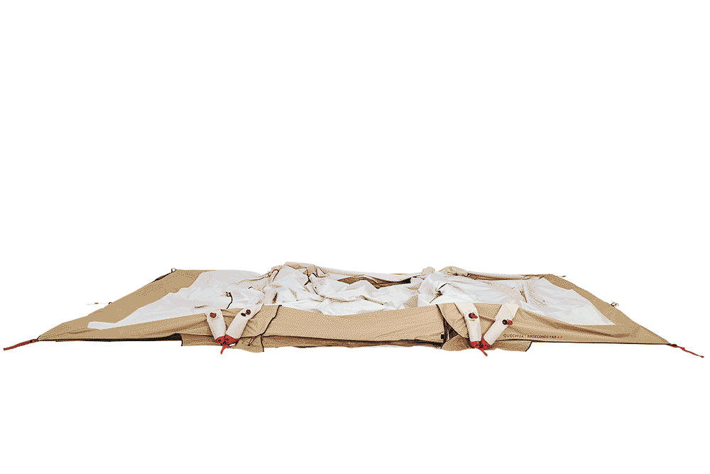 ケシュアのテントは全てフランスのシャモニーで企画・研究開発が行われています。また、安心してご利用いただくためにフライシートには耐水圧 2,000 mm、グランドシートには耐水圧 5,000 mmの防水加工が施されており、60 km/h の風を想定した耐風試験も実施済みです。品質に自信があるからこそできる5 年保証です。