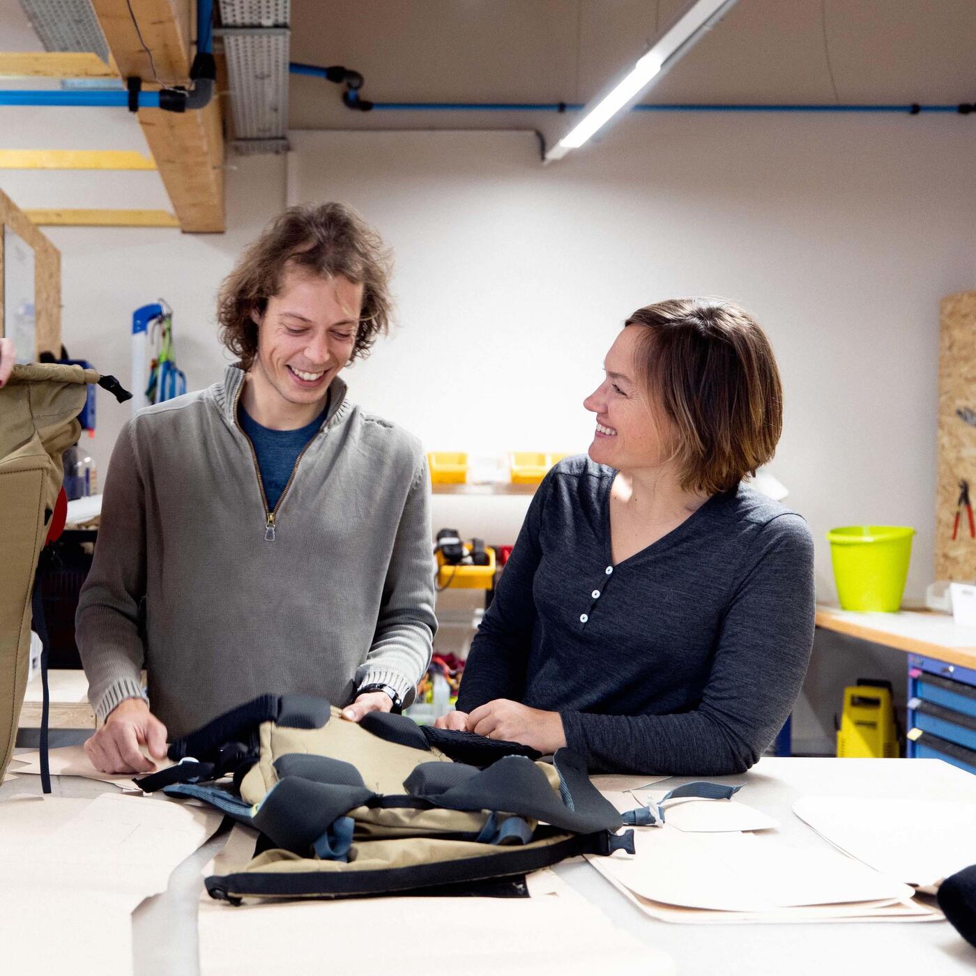 開発の各段階では、試験やプロトタイプの作成が行われます。あまり複雑でない製品(ジャケット、寝袋、バックパック)であれば社内で開発できますが、例えばハイキングブーツのソールのように金型が必要な場合は、外部の工房に依頼する必要があります。