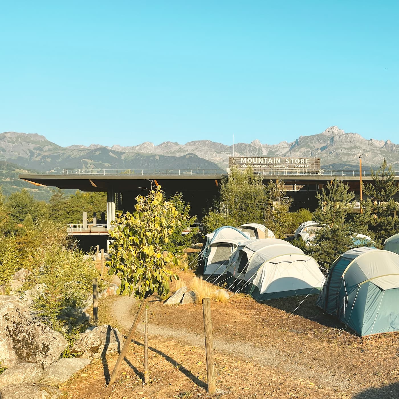 フランス(より正確にはパッシー)のモンブランの麓にある専用施設に、バッグやテントを設置しています。