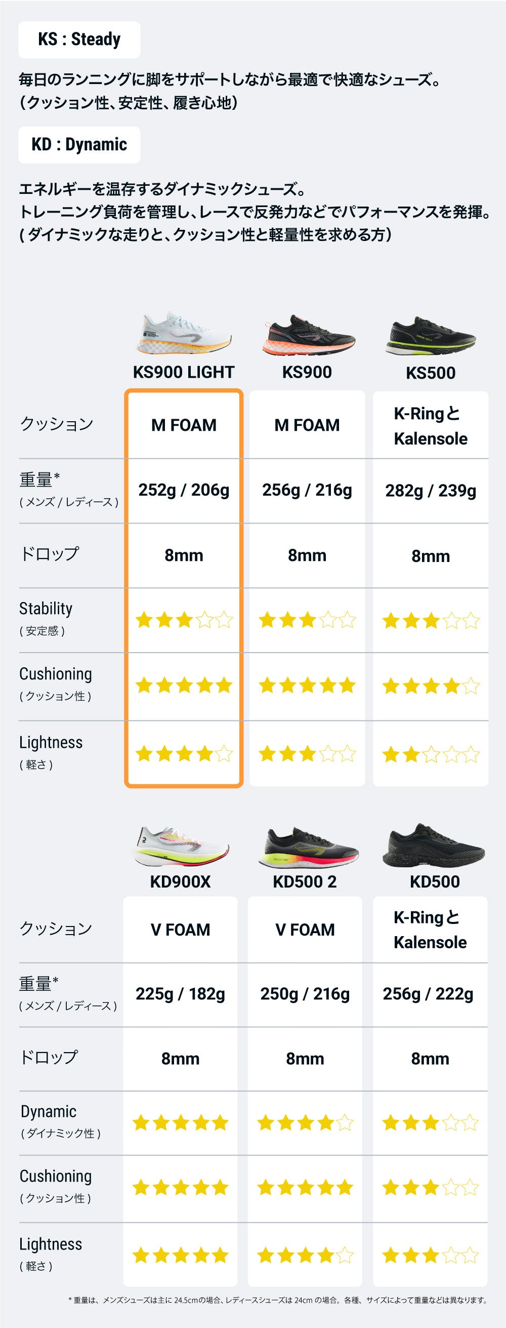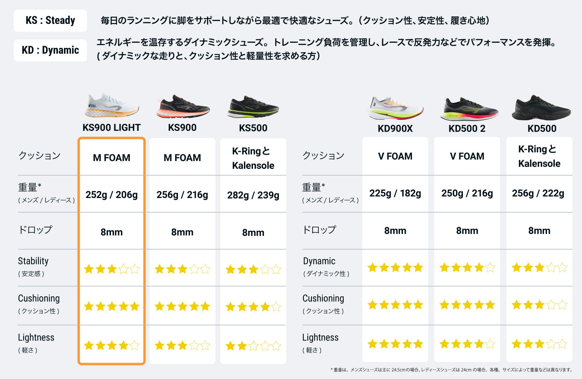 この厚いハニカムフォームである柔軟なMFOAMテクノロジーを搭載。KS900 LIGHTは、長距離を定期的に走るアスリートに最大限の快適さとクッション性を保証します。実際、この非常に柔らかく反応性に優れたフォームは、長距離走行でも真の快適さを提供します。 256g(メンズ24.5cm)/252g(レデイース24cm)を切る軽さで、高いレベルの履きやすさを維持しながら、軽い履き心地を実現しました。