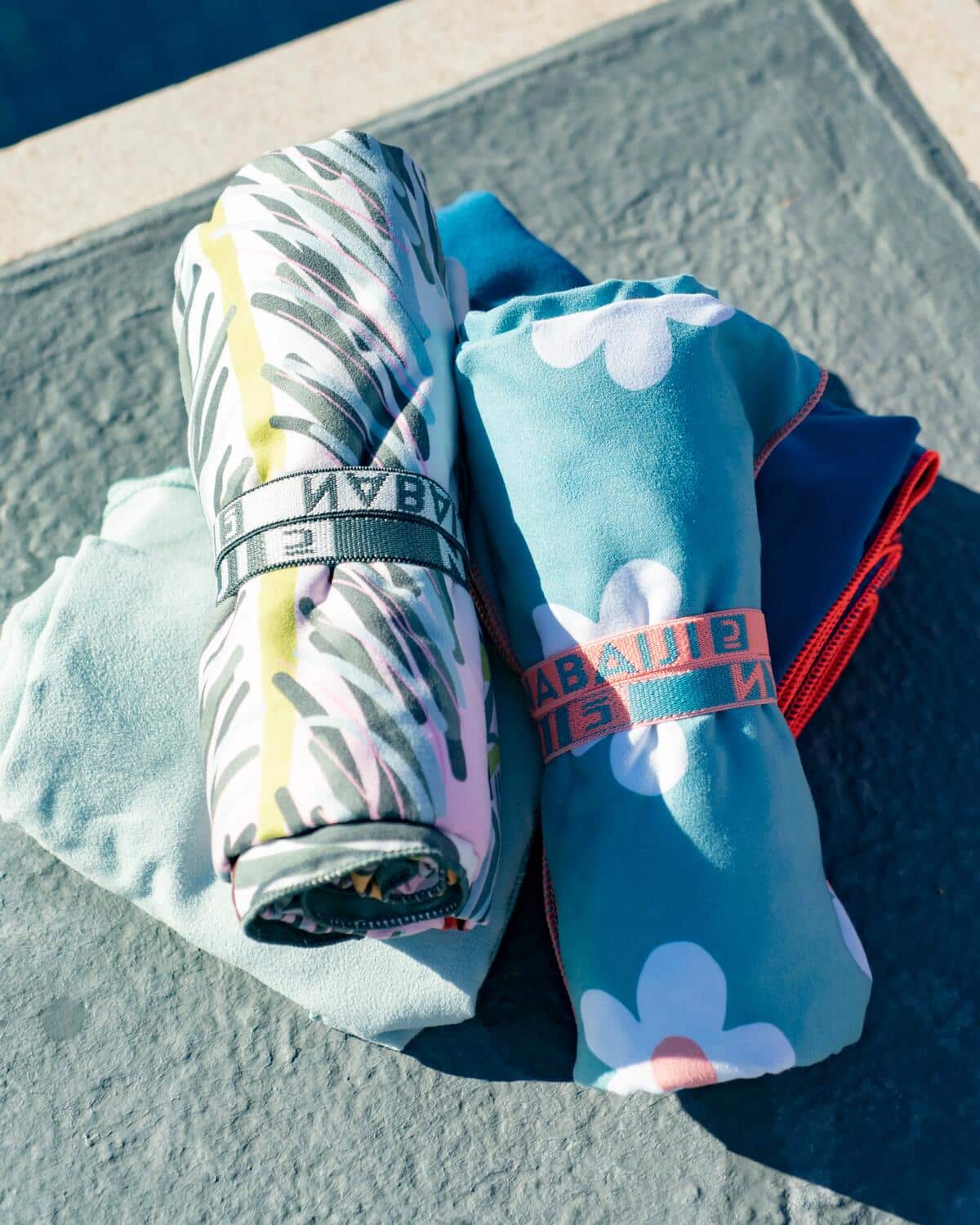 とてもコンパクトで、軽量で、持ち運びに便利なマイクロファイバータオル。