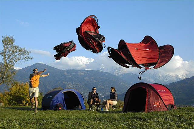 「2秒」革命がついに登場。「空に投げるだけで広がるテントがあればいいな」そんな夢のような思いから生まれたアイデア。18,730 時間の研究開発を経て遂に2 SECONDS のポップアップテントが登場し、一躍有名に。