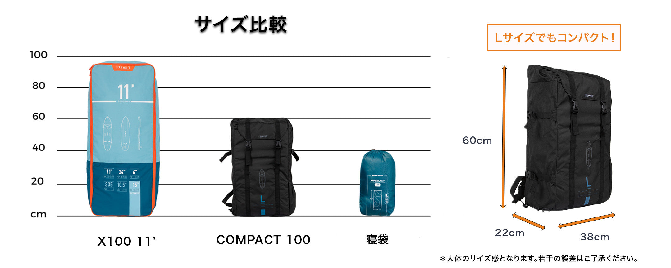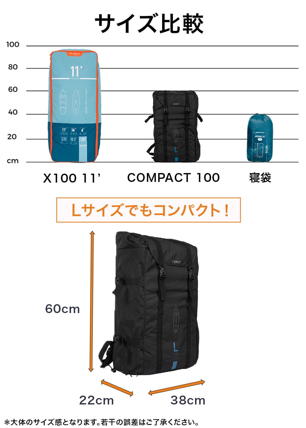 30Lのバックパックに収まるコンパクトサイズで、持ち運び楽々。